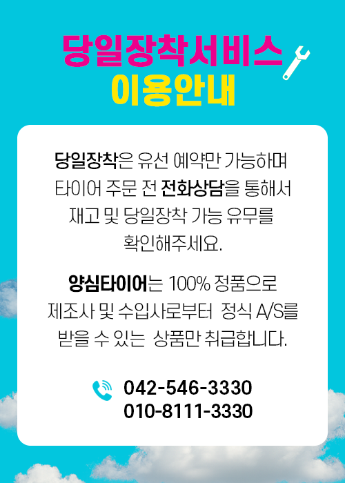 최고의 시설과 장비로 오늘 예약하고 바로 장착이 가능한 양심타이어 !