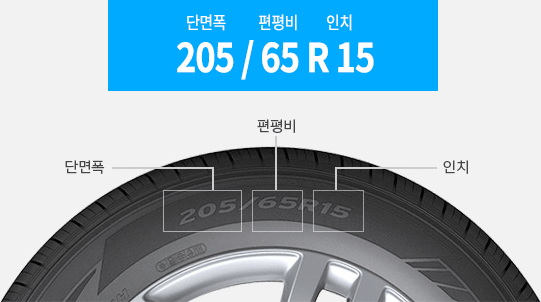 차량 타이어 옆면에 표기된 큰 숫자가 타이어 사이즈 입니다.